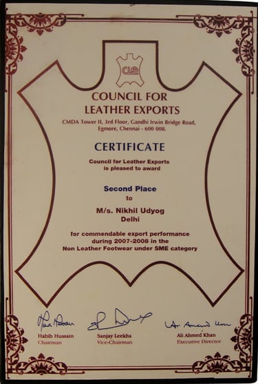 2005-2009: Awarded 5 times for Commendable Export Performance by 'The Council for Leather Exports', Chennai'