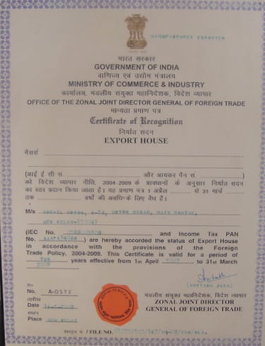 2007: Recognized as an 'Export House' by the 'The Ministry of Commerce and Industry, India'